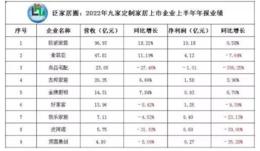 我们可以看到,除了欧派、索菲亚头部企业,还有很多家居企业陆续跟进整家战略,或推出相关的整家套餐。如:顾家、三峰、劳卡、卡诺亚、掌上明珠、诗尼曼等等。 毋庸置疑,整装与整家都非常考验企业的综合能力,尤其是供应链整合实力,这对大家居企业而言,可能是个最好的正确的突围方向,但是对中小家居企业而言,估计是个不小的难题,要在这股“整”之大势下,找准自身的切入口。 入局门窗市场 而在定制家居行业的门窗跨界之道上,早在2018年这个全屋定制风靡的高光时刻,欧派家居欧铂尼门窗就抢先入局门窗蓝海,强势进击。并且出场便自带智造实力、自带定制基因,彼时入局门窗市场,算准了“天时”,结合自身集团背后雄厚资源的“地利”、“人和”,迅速抢滩占据了首席之位。 今年,索菲亚也高调入局了门窗市场。索菲亚创新性地推出了 “门墙窗”一体化的整体解决方案,开创了门窗行业从卖“单品”到卖“生活方式”的全新商业模式转变。索菲亚门窗还推出3312模式,为未来索菲门窗角逐门窗市场做好了充足的准备。 伴着森鹰门窗的成功上市,加之定制家居的竞相入局,范居士相信,大门窗行业必将迎来更大的发展和更多的关注,能否改写门窗行业多年来呈现出的“大行业、小公司”的格局?我们拭目以待。 推出高定子品牌 过冬之际,入局高定赛道也成为了一个较热门的破冰点,目前众多定制家居企业先后推出高定子品牌。 去年金牌厨柜推出了金牌G9高定品牌,以高端木皮和高端烤漆为主,石、金、皮革材质结合,目前已经推出了天境、天启、天墨等产品系列,据悉还将有一系列设计师联名产品合作计划。 顶固集团也于去年发布了高端系统定制家居品牌Latop钠朴。以严选的进口主材、前沿的设计风格和变化多样的产品组合,建立了包括厨房、卧室、生活区在内的整体家居系统。客群定位为高净值群体,和顶固全屋定制的中高端客户作出区分。 今年5月,欧派家居全资收购意大利高端家居品牌FORMER,并于6月发布了全新高定家居品牌miform,以“米兰艺术家”为品牌核心理念,传承FORMER百年经典设计哲学,为消费者打造前沿高端的家居设计,为高定赛道提供了另一个战略范本。 另外,玛格定制家居于2020年创立了高级全案定制品牌玛格•极,聚焦高端人群的生活艺术呈现,以全案定制服务能力满足精英人群的个性化需求。玛格•极首家旗舰店,于今年7月落地广州。 随着90后消费主力的经济生活水平提高,新一代的消费需求也随之更新,加之90后、00后对生活质量的要求愈加提高,相信对高定品牌的发展也有一定的推动作用。 结语: 转眼间,“口罩经济”已经进入第三年了,疫情对全球经济来了个重击,许多企业在第三年终于支撑不下去了。据不完全统计,截至今年9月份,国内外已经有9家家居企业倒闭,19家破产,还有很多小企业没有计算入内。 面对这种情况,企业也不能坐以待毙,稳定现存项目的同时也要去发掘新的方向。纵观定制家居大企业当前的发展,升级至整家定制与整装定制、入局门窗市场、推出高定子品牌等,不断挖掘和入局更多新战场,更好地满足消费者的一站式家装消费需求,这都是定制家居企业的“过冬法则”。此外,也有不少的门窗企业、软体家居企业等选择往全屋定制的大方向发展,亦是为了更全面地满足消费者的需求而再谋出路。 对企业本身来说,无论大企业还是小企业,在某个领域有所成就的同时,目标成为“六边形战士”,才有利益于企业日后发展。且在这个全球经济寒冬的季节,也不会因单一发展而轻易受重创。像欧派、索菲亚等定制家居大企业,作为行业的龙头,是行业的定海神针,他们不断为定制家居行业提供了新的方向指引,多样化、全渠道发展,但路漫漫,任重道远。 有数据显示,国内GDP第三季度与上半年相比呈上升状态,专家预计第四季度会稳步恢复,居民消费在第三季度也明显回暖,并呈现出前低后高的走势。如今,2022年最后一季度已至,纵观9大上市全屋定制家居企业的半年报业绩数据,虽然不如去年的好看,但范居士相信定制家居行业还是能够“安稳过冬”的,愈难愈上。